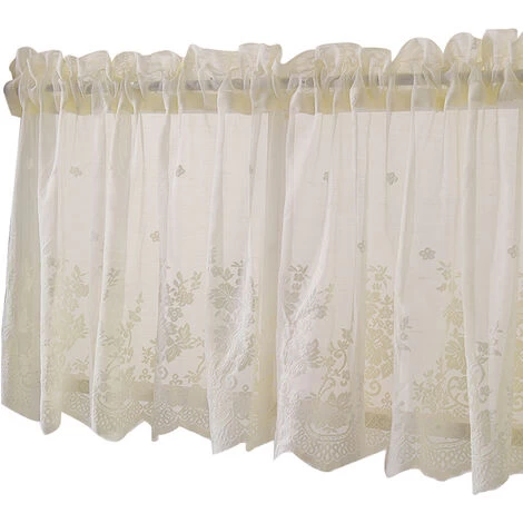 1. 【Élégant】:Élégant rideau de café de cuisine brodé, cantonnière creuse en dentelle transparente, décoration parfaite pour le traitement des fenêtres.
