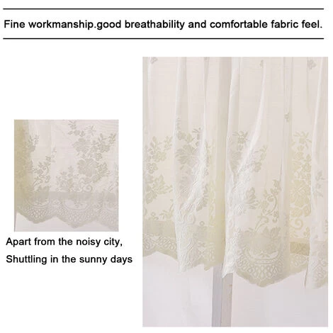 3.【Design】:Avec un élégant motif de fleurs et de feuilles brodées, un petit rideau de dentelle semi-transparent, vous protège des reflets gênants en filtrant doucement la lumière du soleil.