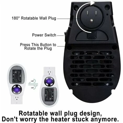 【Fiche rotative à 180 °】 Les radiateurs soufflants pour la maison peuvent pivoter à 180 ° pour s’adapter aux prises de courant dans différentes conditions et positions. Si votre prise de courant est à l’envers, faites simplement pivoter la fiche pour