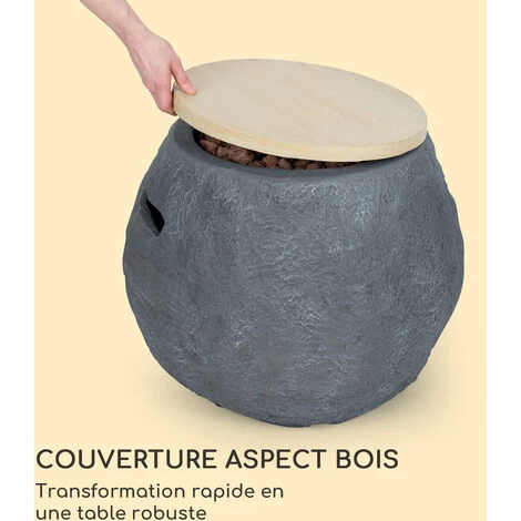 Avec le foyer à gaz Andros de blumfeldt, vous pouvez installer dans votre jardin une vasquemerveilleusement romantique qui se transforme en un clin d’œil en une table de jardin rustique. En contrepartie, le robuste chauffage à gaz est équipé d’un couvercle assorti, résistant et d’aspect bois. Si vous enlevez le couvercle qui correspond exactement, vous découvrez un foyer dans lequel des flammes chaudes jaillissent de pierres de lave naturelles.