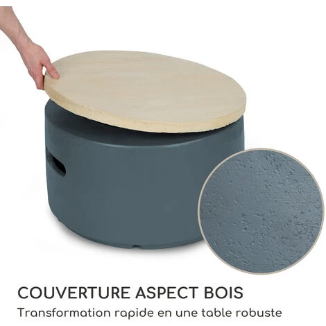Avec l’insolite blumfeldt Pilos Foyer à gaz, vous pouvez installer dans ton jardin un brasero merveilleusement romantique, qui se transforme en un clin d’œil en une table de jardin rustique. Pour ce faire, le robuste chauffage au gaz est accompagné directement d’un couvercle assorti et résistant à l’aspect bois. Si vous enlevez le couvercle rond qui correspond exactement, vous découvrez un foyer dans lequel des flammes chaudes jaillissent de pierres de lave naturelles.
