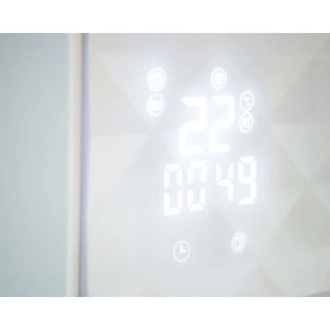 Il dispose d’un panneau numérique LED à travers lequel vous pouvez contrôler la température et la programmer pour des heures et même des jours, grâce à son programme hebdomadaire, vous pouvez également choisir le mode de fonctionnement qui s’adapte le mieux à vos besoins (ventilation, tempéré ou chaud). Il inclut également un télécommande. Avec un design blanc, compact (LxPxH: 54x19x12 cm) et léger (6kg), il est très facile à accrocher au mur et chauffe des surfaces jusqu’à 12m2.