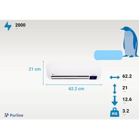 Son utilisation est très simple, il dispose d’un panneau numérique LED à travers lequel vous pouvez choisir entre ses 3 modes de fonctionnement: ventilation, tiède ou chaud. Il comprend également une minuterie pouvant aller jusqu’à 8 heures et une télécommande. D’un design blanc élégant, compact (LxPxH : 62×12,5×21 cm) et léger (4kg), il est très facile à accrocher au mur et chauffe des surfaces jusqu’à 12m2.