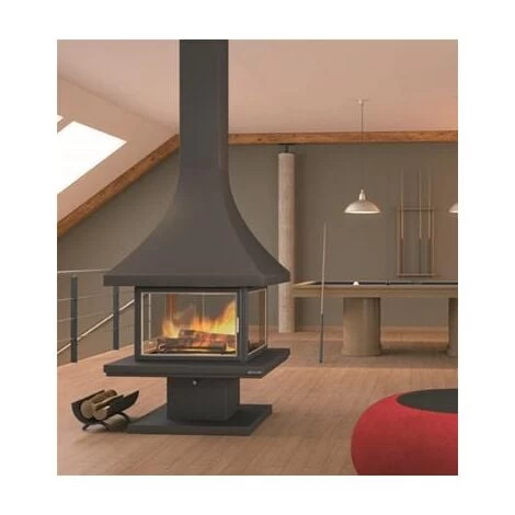 Cheminée centrale base réfractaire avec porte en verre et cadre anthracite