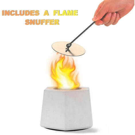 Cheminée de table élégante au bioéthanol, foyer intérieur avec finition en béton naturel est un excellent cadeau; Dimensions totales (Diamètre/H): 15 x 9.3cm