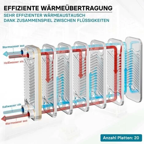 Échangeur de chaleur thermique inox 20 plaques max. 44 kW