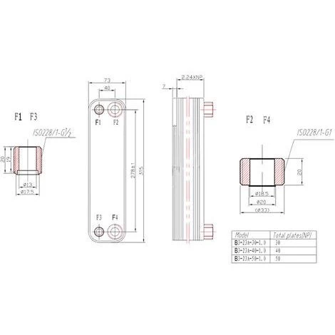 | Matériau des plaques / Matériau des raccords | Inox AISI 304 |
