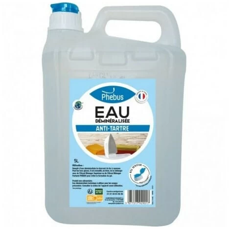 Informations produitConseilsAvant toute utilisation, lire l’étiquette et les informations concernant le produit, puis faire un essai préalable sur un endroit peu visible. l’eau déminéralisée s’utilise toujours pure dans les fers à repasser, les nettoyeurs vapeur, les décolleuses de papier-peint, les batteries, les accumulateurs et les radiateurs de voitures, ainsi que pour laver les objets délicats (nacre). Pour les lave-glaces, il est conseillé en hiver de la mélanger avec de l’alcool ménager supérieur (50% d’eau et 50% d’alcool) pour obtenir un produit résistant à -25°C.