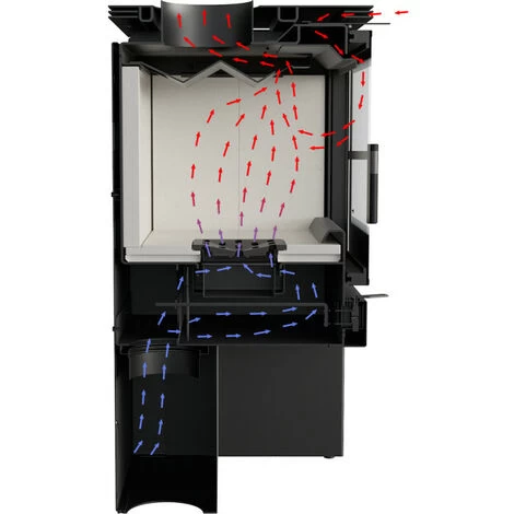 – Réduction de dépôt de suie à travers un système de système de verre propre (à rideau d`air). Rideau d`air sépare le verre de la chambre grâce de ce que le verre ne devient pas sale et émettent plus de chaleur dans la pièce.