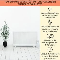 Wallander Radiateur à Bain D’huile Ultra Plat 800W Thermostat – Blanc