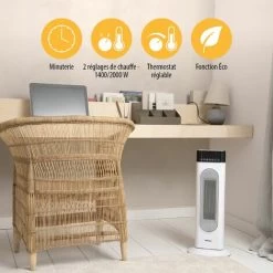 Chauffage Soufflant 2000 W 3 Modes De Fonctionnement Avec Télécommande Et Minuterie