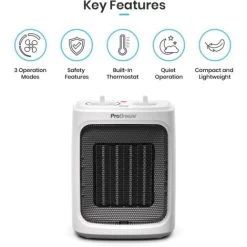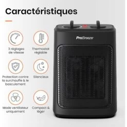 Mini Radiateur Céramique 2000W, 3 Niveaux De Puissance Pro Breeze