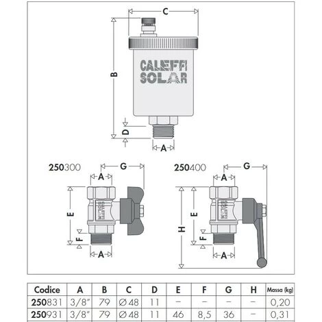 Purgeur d’air automatique pour installations solaires avec corps en laiton chromé |Caleffi 2508-2509