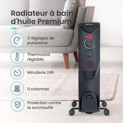Chauffage Silencieux : C’est grâce à une puissance sonore de seulement 32dB que le radiateur à bain d’huile Pro Breeze offre une qualité de chauffage supérieure. Profitez de températures agréables sans bruit, de jour comme de nuit.