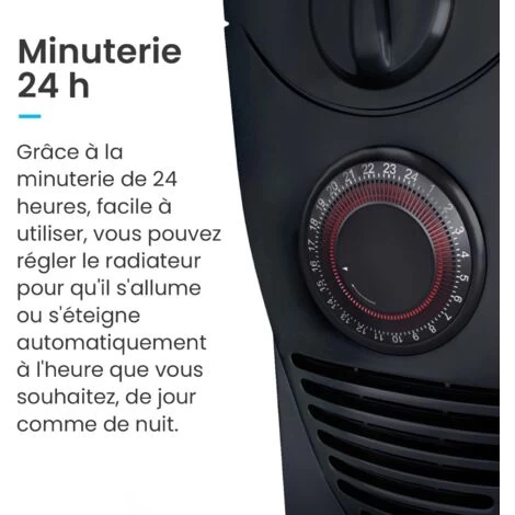 Radiateur à bain d’huile Programmable pour un Contrôle complet : Un thermostat et une minuterie de 24 heures intégrés permettent d’économiser de l’énergie et de chauffer efficacement à la température souhaitée différentes tailles de pièces, en programmant des plages horaires pour que votre chauffage d’appoint s’allume ou s’éteigne au moment où vous le souhaitez.