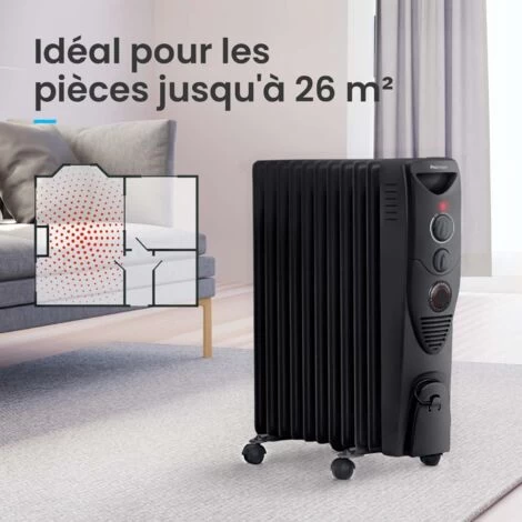 Chauffage électrique puissant avec 11 colonnes et 3 réglages de chaleur :Vous avez le choix entre trois niveaux de puissance 2500W, 1300W et 1200W, idéal pour un chauffage efficace et continu des chambres, du bureau, du salon. Grâce aux deux interrupteurs permettant de régler la température et de sélectionner les niveaux de puissance, le radiateur peut être ajusté en un rien de temps.