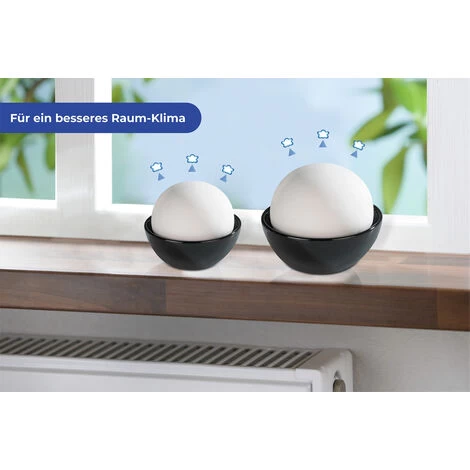 - Set de 2 pour l’humidification des pièces sèches, notamment en hiver durant la période de chauffage Augmentation du bien-être et optimisation du climat intérieur À poser sur le radiateur ou le rebord de fenêtre Décoratif et discret, en céramique sphérique, avec une grande surface pour augmenter la capacité d’évaporation Dimensions (L/l x h) : Ø 9 x 8 cm/Ø 12 x 10 cm