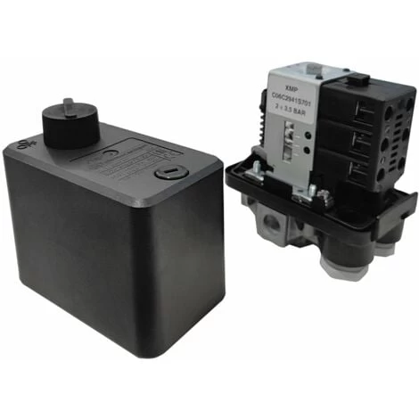 Pressostat ou commutateur de pression assurant le départ et l’arrêt automatique de la pompe à eau selon la pression basse et haute déterminée. Ce dispositif est principalement utilisé sur des surpresseurs et réservoirs à vessie.