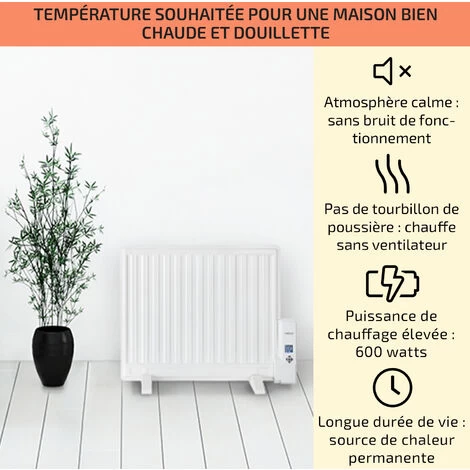 CHALEUR ET ÉLÉGANCE DANS VOTRE MAISON : Nos radiateurs à huile apportent une chaleur douillette pendant l’hiver. Ce convecteur basse énergie oneConcept 600W assure une distribution uniforme de l’air chauffé dans toute la pièce.